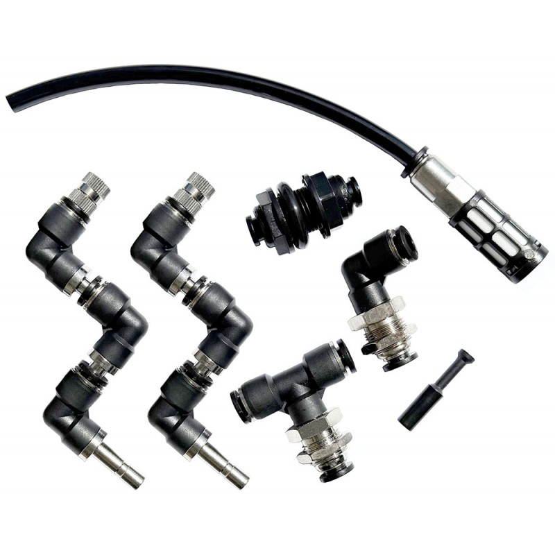 It features stainless steel misting nozzles with a self-priming, whisper-quiet pump, along with vibration-dampening rubber feet, and can run dry without damaging the motor. It comes with 15 feet of poly tubing and can handle up to 10 nozzles.
